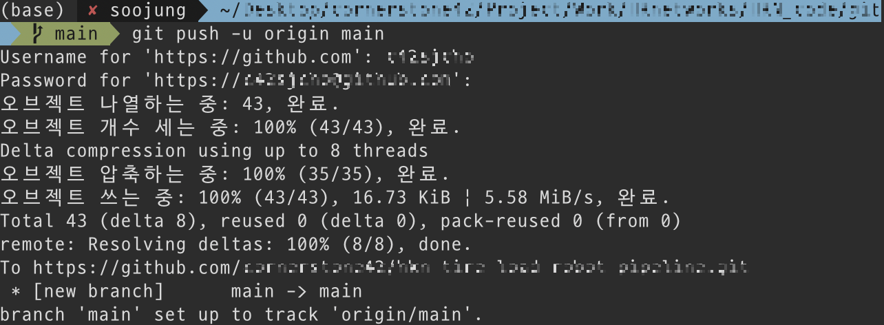 아래 명령어를 입력하면 username과 password를 입력하면 된다. 하지만 git 가입했을 때 비밀번호를 입력해도 오류가 났다.