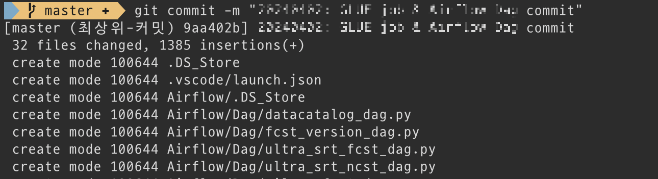 5. git 커밋할 대상을 추가 및 커밋메시지를 작성한다.