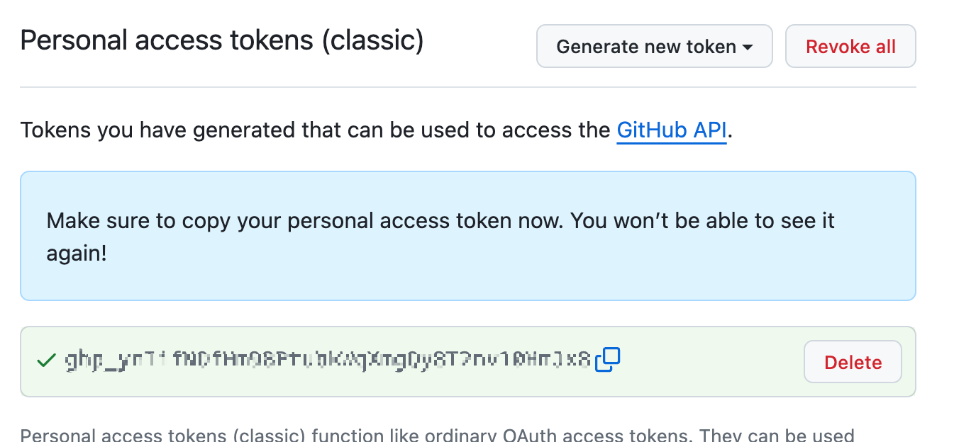 이제 password 대신 아래 토큰을 복사해서 사용하면 된다.