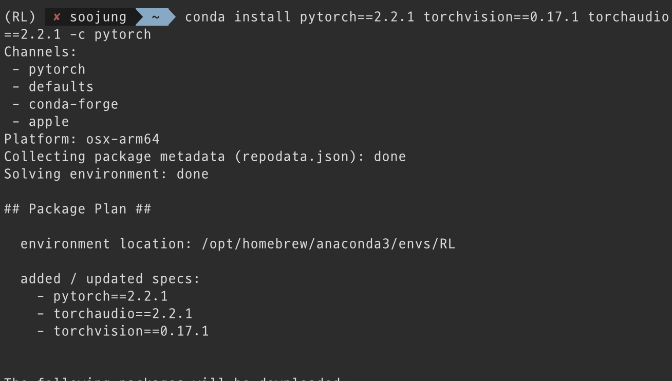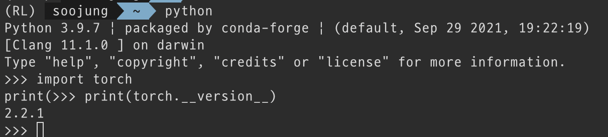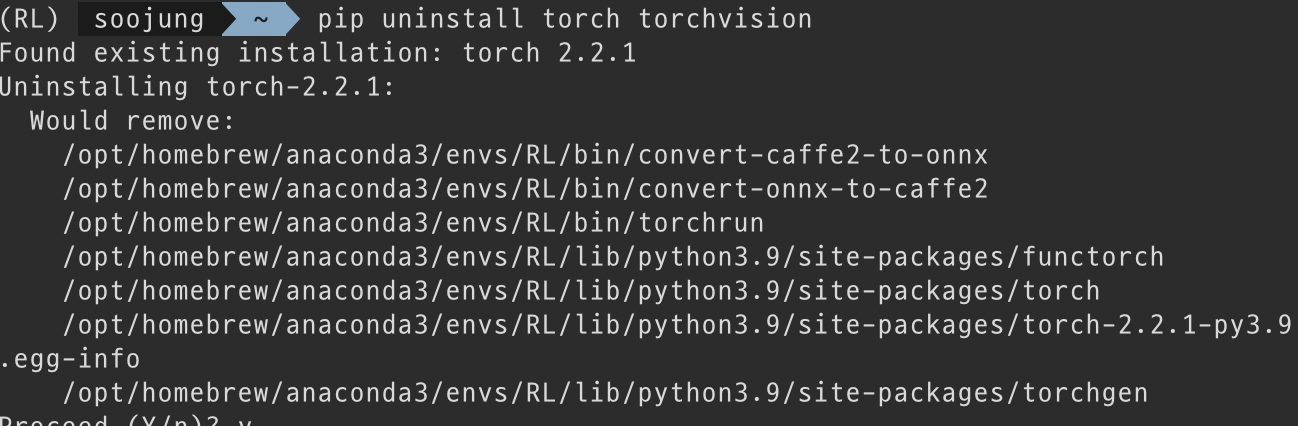 Mac의 오류인 것을 인지하지 못하고 torch 재설치를 해보기도 했다.