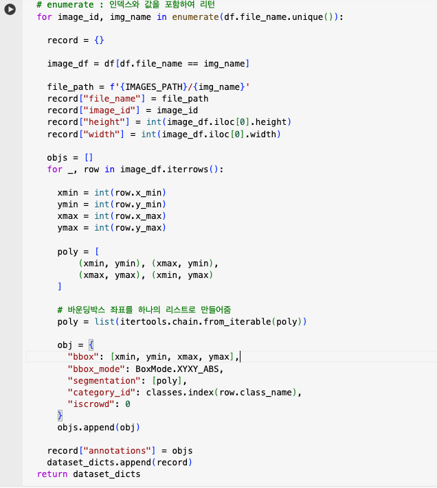 11. bounding box의 좌표와 정보들을 dict type으로 함수를 만든다