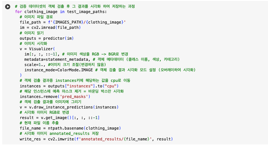 # 검증 데이터셋의 객체 검출 후 그 결과를 시각화 하여 저장하는 과정