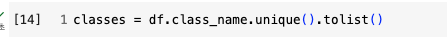 10. 클래스 종류별 list를 classes라는 변수에 설정했다.