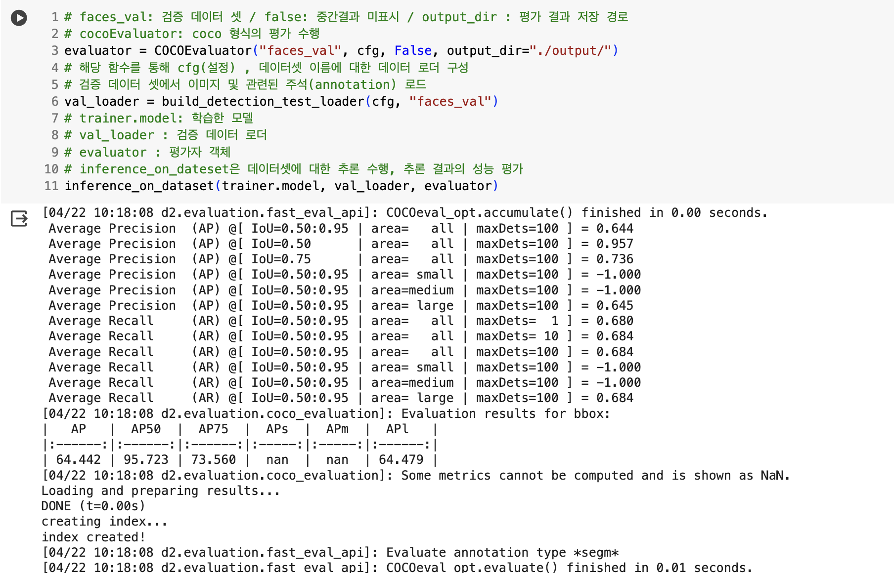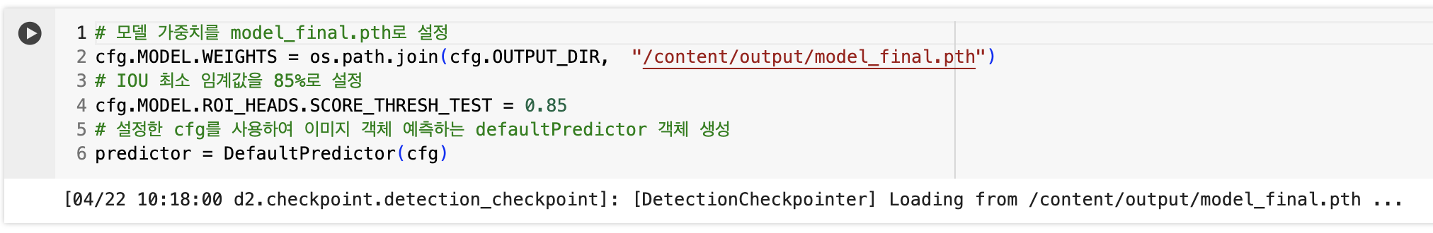 17. output 폴더에 학습하면서 저장된 가중치 model_final.pth로 평가를 진행할 예정이다
