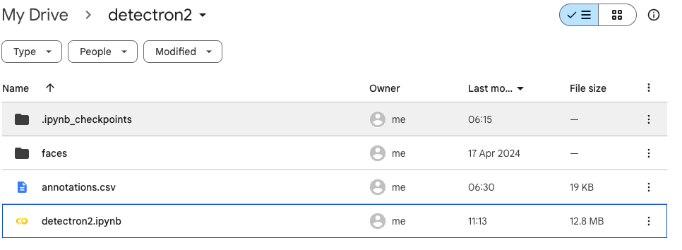 1. google colab 실행 후 detectron2 폴더에 이미지 및 annotation.txt 파일 업로드한다.