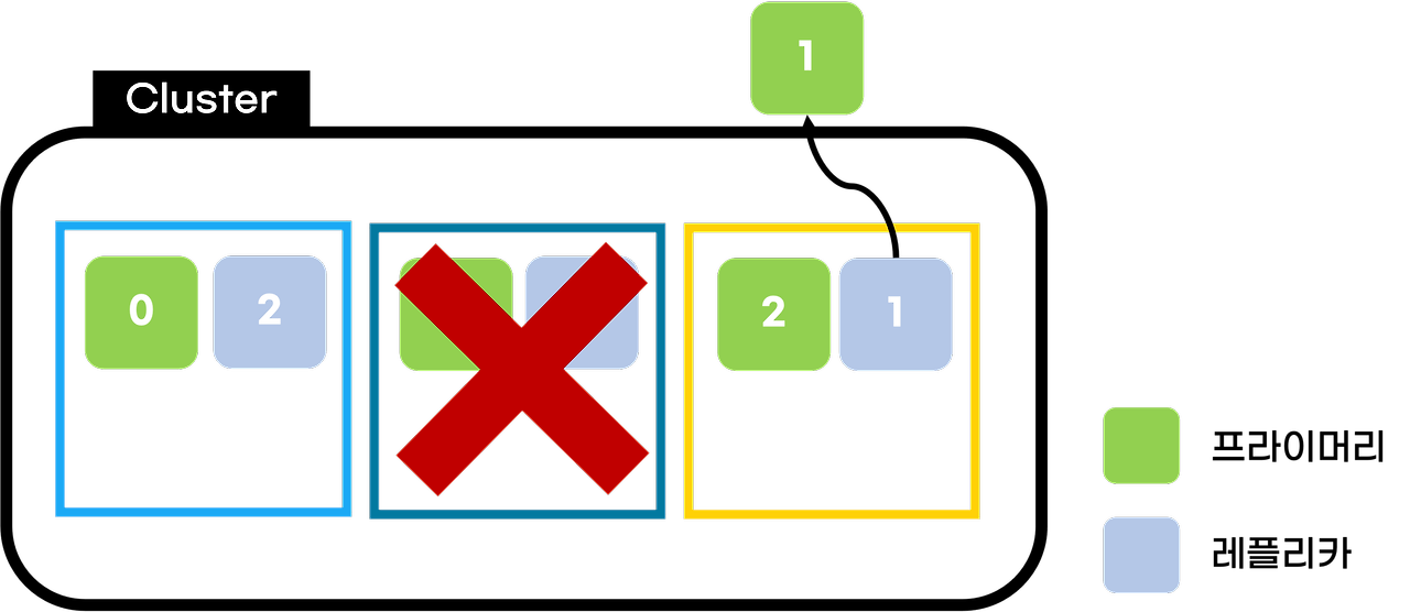 동일한 데이터를 포함하는 프라이머리, 레플리카는 같은 노드에 존재할 수 없게 설정되어 잇음